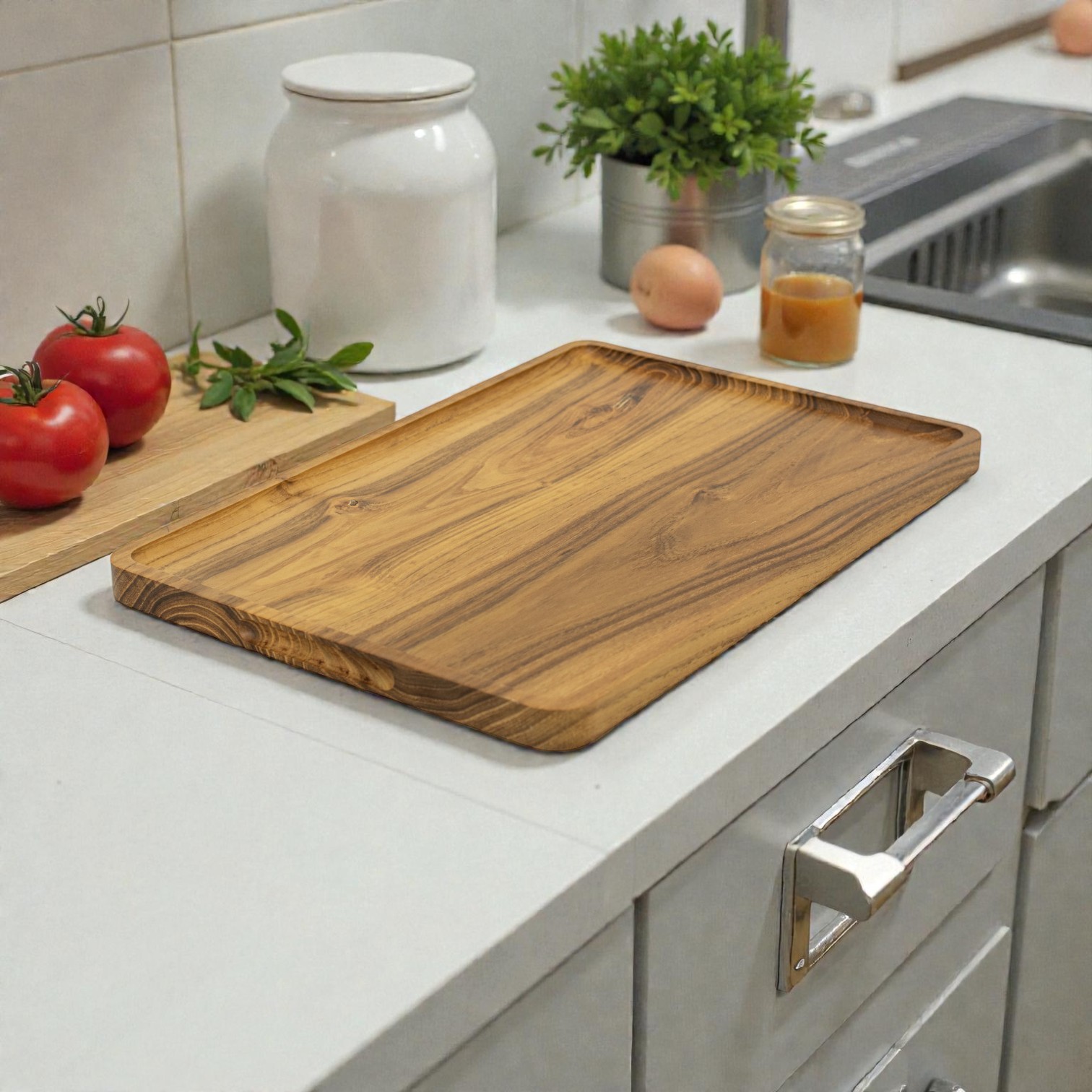 Πόσο ξεχωριστό να τρως πάνω σε έναν ξύλινο δίσκο από φυσικό ξύλο Teak… Εμπειρία αλλιώς, πιο φυσική, πιο οργανική και βαθιά, με τους χυμούς του ξύλου να δίνουν γήινες μυρωδιές και το άγγιγμα πάνω στο ξύλο να μοιάζει πρωτόγονα λυτρωτικό. Πέραν της εμπειρίας, όμως, το πιάτο συνδυάζει και πρακτικό χαρακτήρα, με αντοχές και μακρύ κύκλο ζωής. Γεύσου άφοβα κρύες και μαγειρευτές τροφές στην επιφάνειά του.