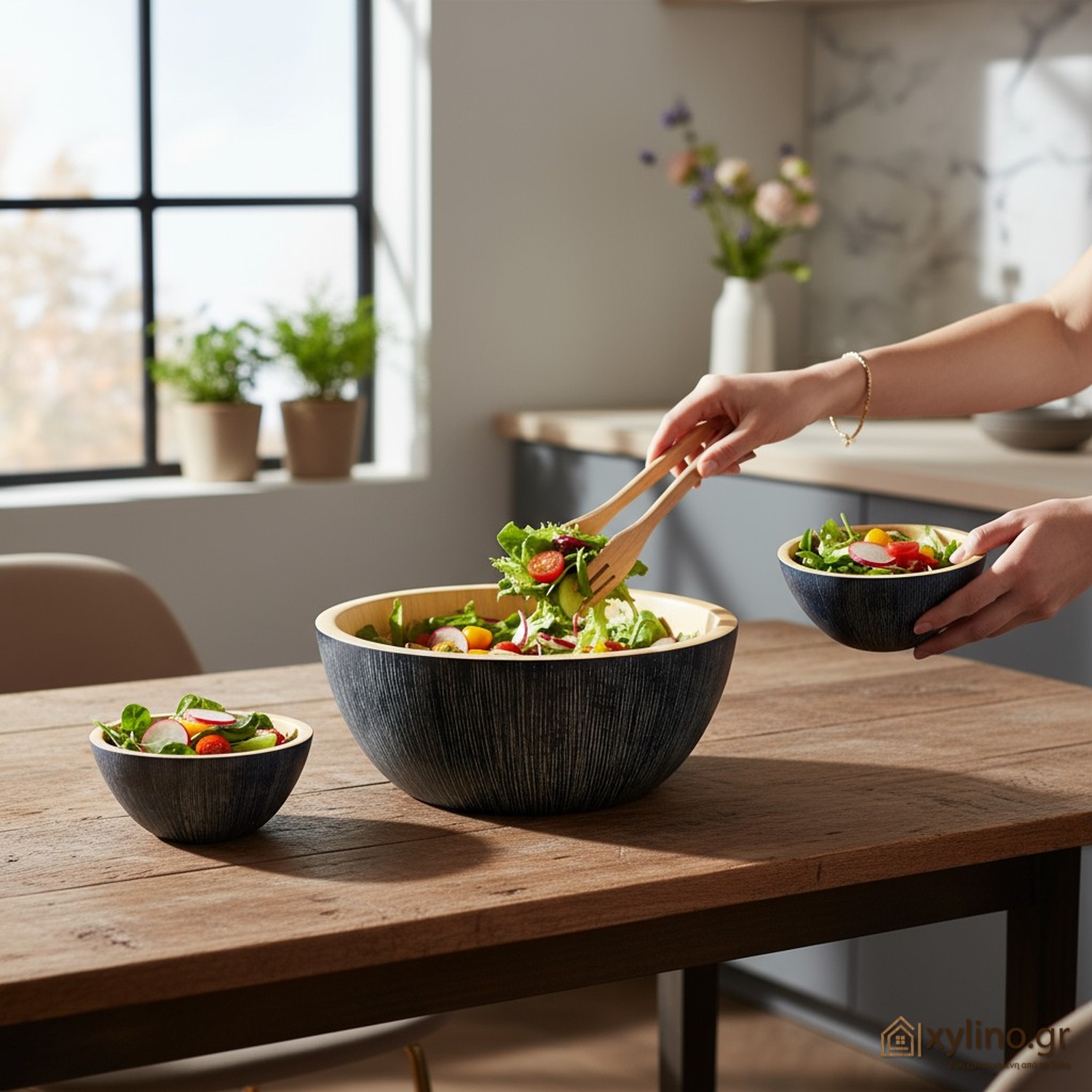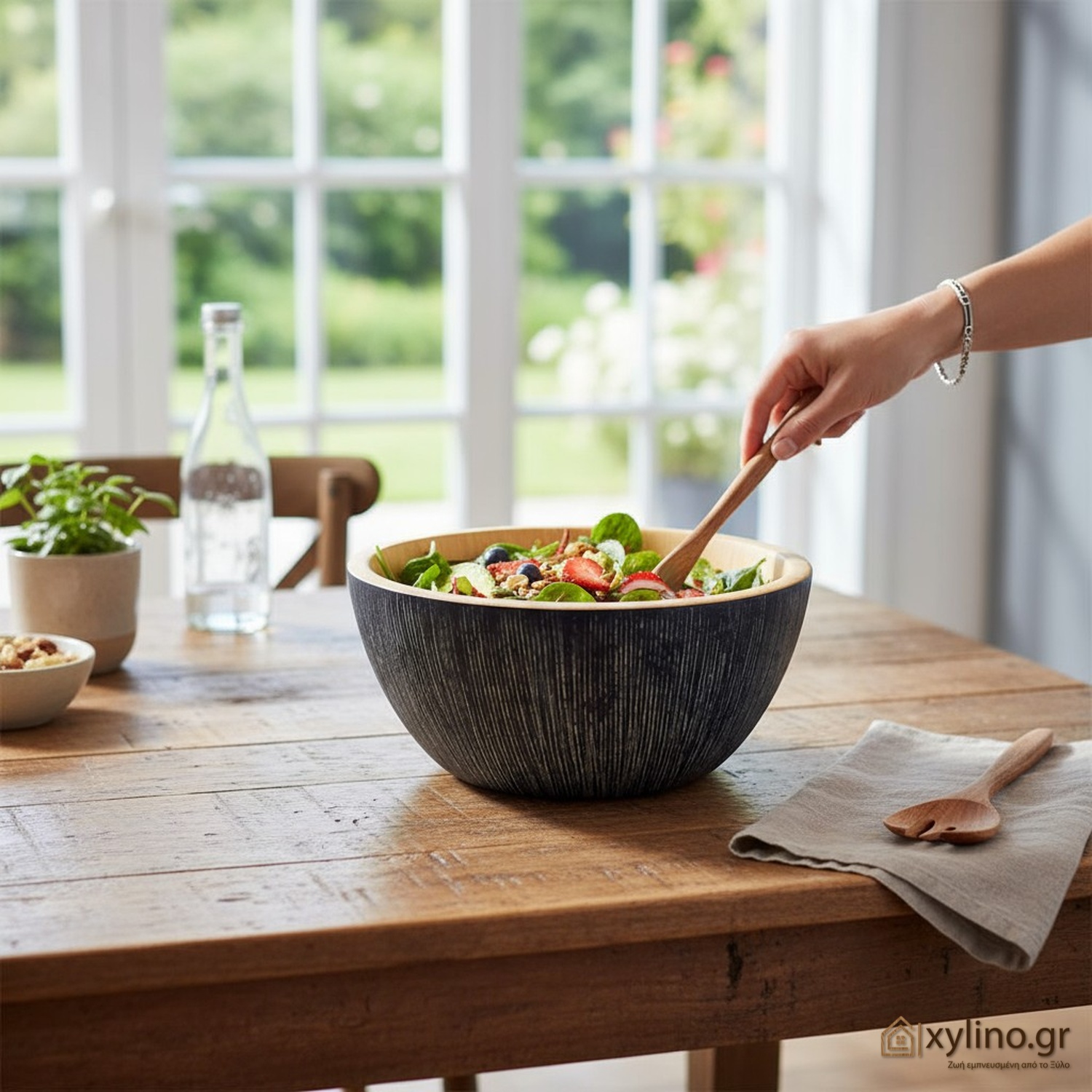 Μπολ ή Μπωλ; Ποτέιτο ή Ποτάτο; Όπως και αν έχεις «δει» τη ζωή, αξίζει όταν την φέρνεις στα μέτρα σου, στις επιλογές και τις επιθυμίες σου. Χρησιμοποίησε αυτό το ξύλινο μπολ από Rubberwood στο πρωινό σου ή στη βραδινή σούπα, στη σαλάτα, στα σνακ και τα τσιπς της παρέας ή απλώς ως διακοσμητικό, και δώσε άλλη νότα στη ζωή σου με μια μικρή πινελιά φυσικού, οργανικού, οικολογικού ξύλου, σε χρώμα σκούρο μπλε.