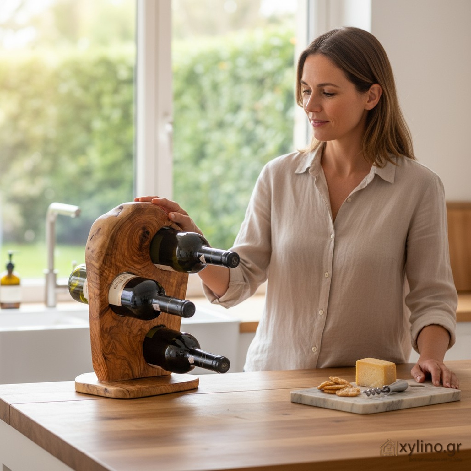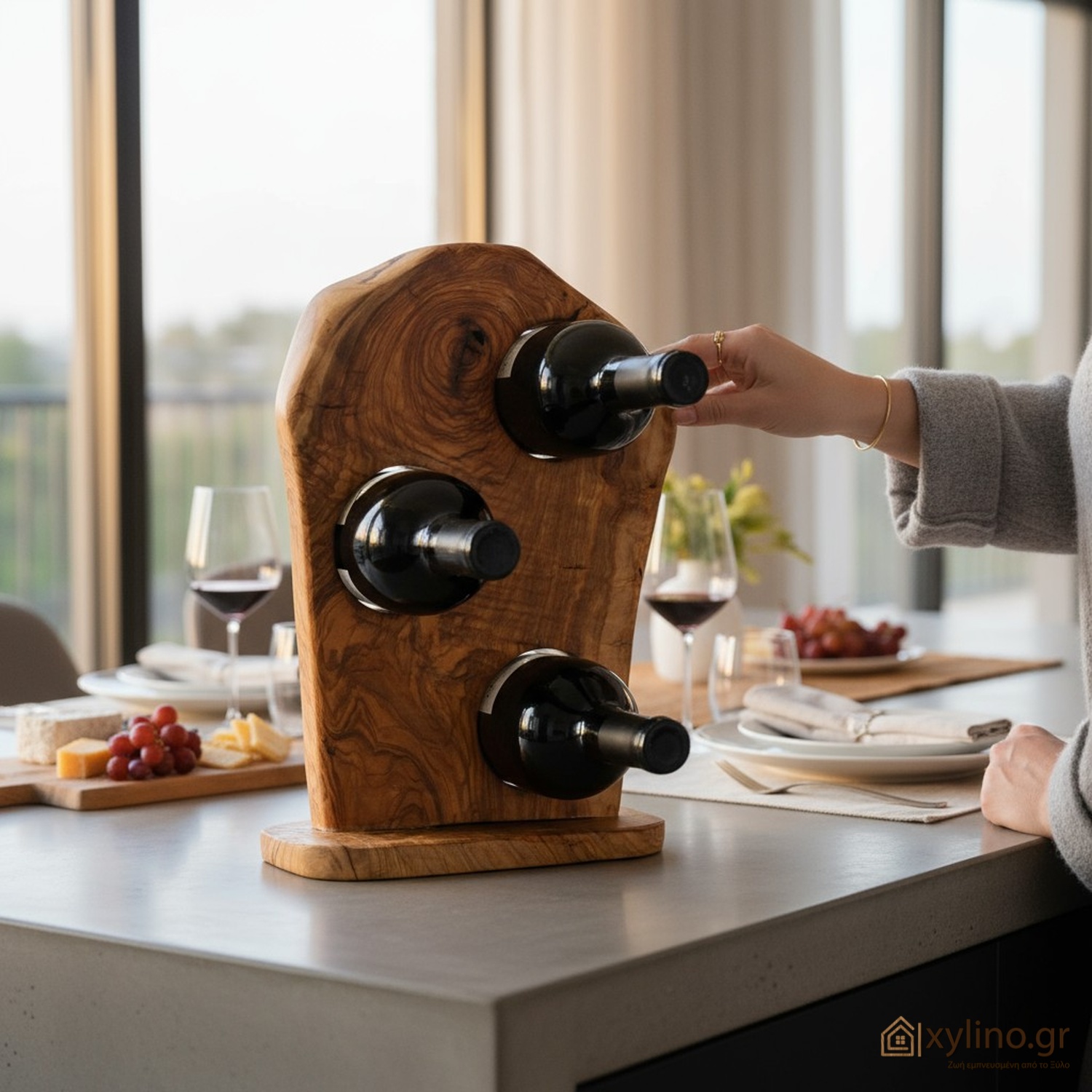 Πραγματικά one-of-a-kind ξύλινο σταντ για κρασί για 3 θέσεις που θα σου φτιάξει τη διάθεση. Αποθήκευσε μέχρι το άνοιγμά του το αγαπημένο σου μπουκάλι κρασί στην προσωπική σου χειροποίητη μίνι κάβα. Θα σε ενθουσιάσει η σχεδίασή του, η οργανική του προσωπικότητα καθώς και τα φυσικά του νερά κι οι αποχρώσεις της Ελιάς.
