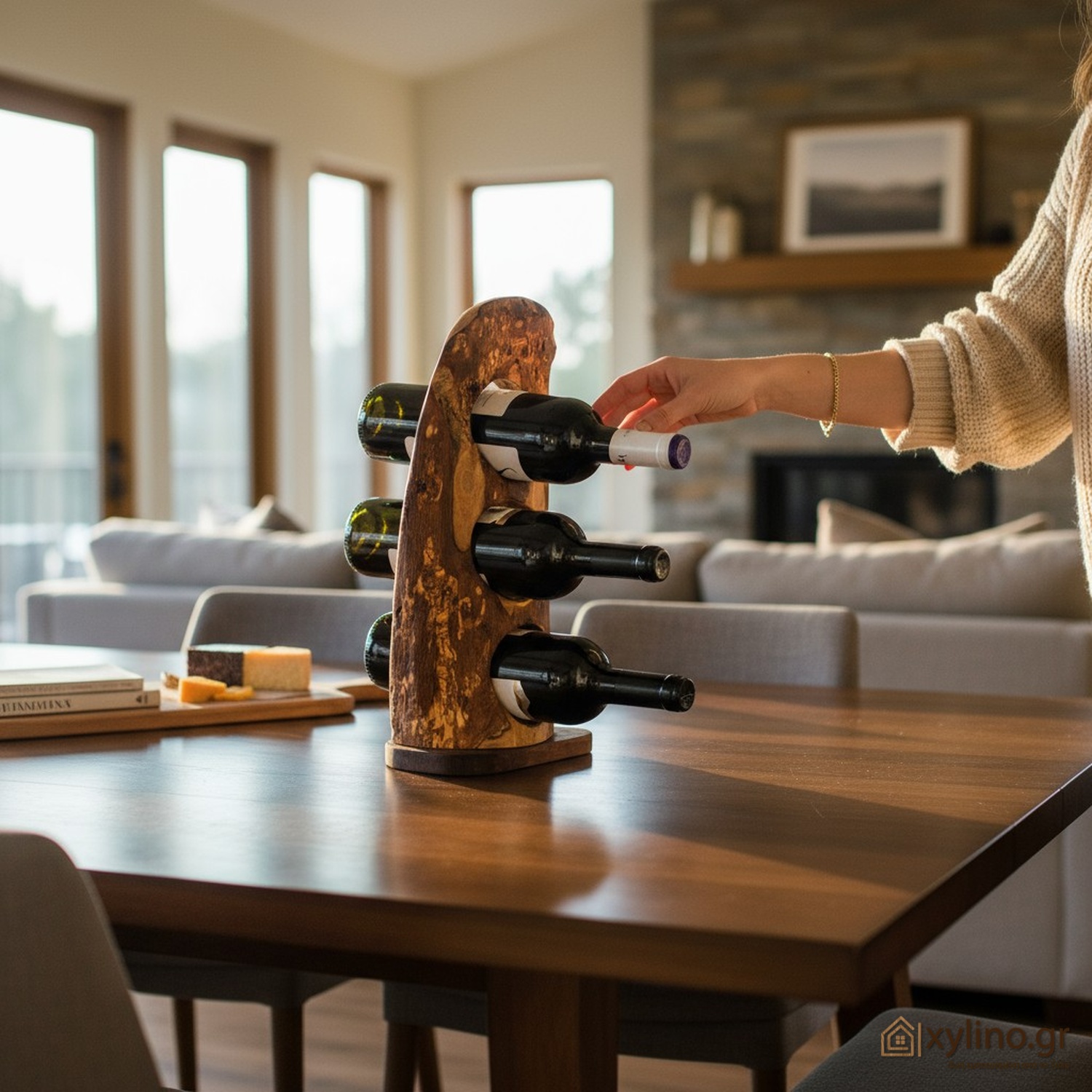 Πραγματικά one-of-a-kind ξύλινο σταντ για κρασί για 3 θέσεις που θα σου φτιάξει τη διάθεση. Αποθήκευσε μέχρι το άνοιγμά του το αγαπημένο σου μπουκάλι κρασί στην προσωπική σου χειροποίητη μίνι κάβα. Θα σε ενθουσιάσει η σχεδίασή του, η οργανική του προσωπικότητα καθώς και τα φυσικά του νερά κι οι αποχρώσεις της Ελιάς.